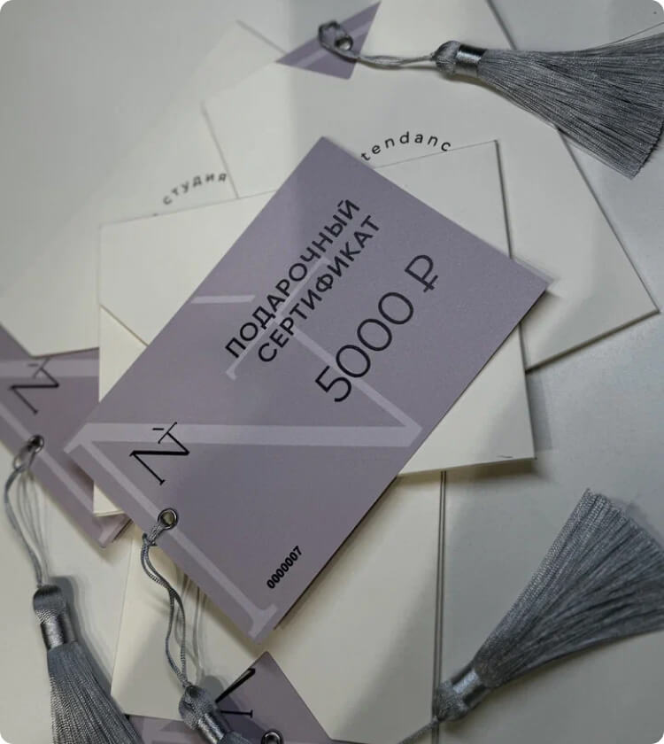 Сертификат действует на все услуги студии. Приобрести сертификаты можно в салоне или заказав с доставкой курьером